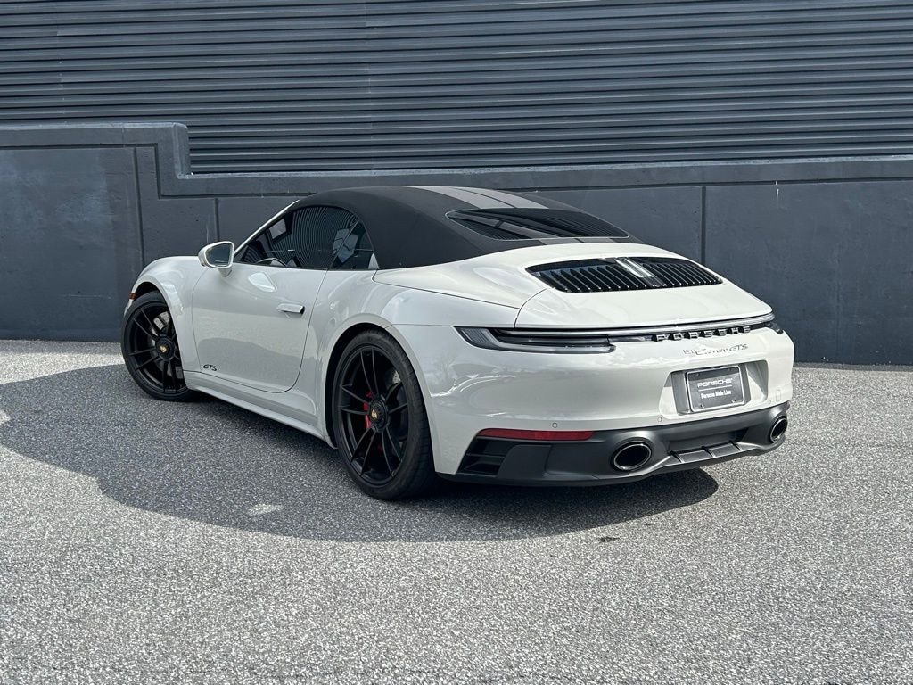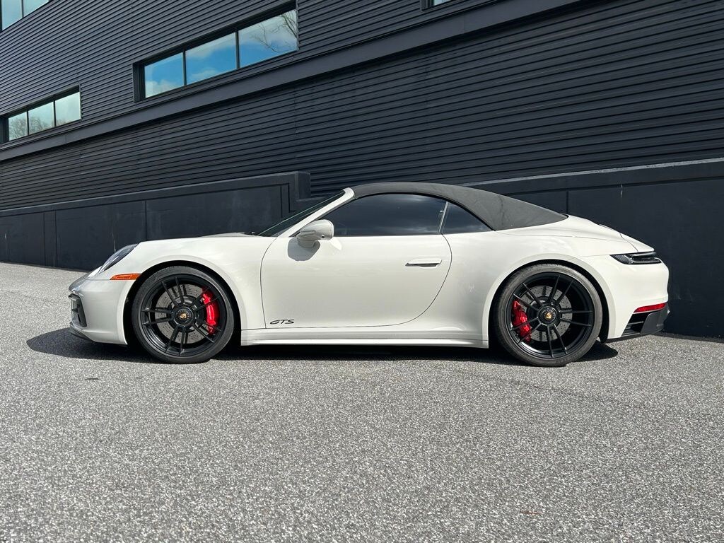 GTS Interior Package in Carmine Red, Chalk, Premium Package, Power Folding Exterior Mirrors, Ambient Lighting, Storage Package, BOSE Surround Sound System, Surround View, Lane Change Assist (LCA), Double Stripe Decal on Front Trunk Lid in Grey i.c.w. Cabriolet Roof in Black with Double Stripes in Grey, SportDesign Side Skirts, Exterior Mirror Base in Exterior Color, Under Door Puddle Light Projectors, Exclusive Design Fuel Cap, Rear Axle Steering, Power Steering Plus, Adaptive Sport Seats Plus (18-way) with Memory Package, GT Sport Steering Wheel in Leather, Vehicle Keys Painted incl. One Key Pouch in Leather, Central Tachometer in Carmine Red, Interior Trim Inlays in Matte Carbon Fiber, Adaptive Cruise Control (ACC).