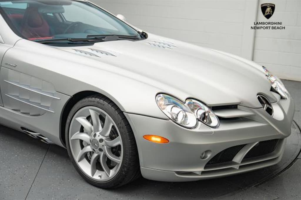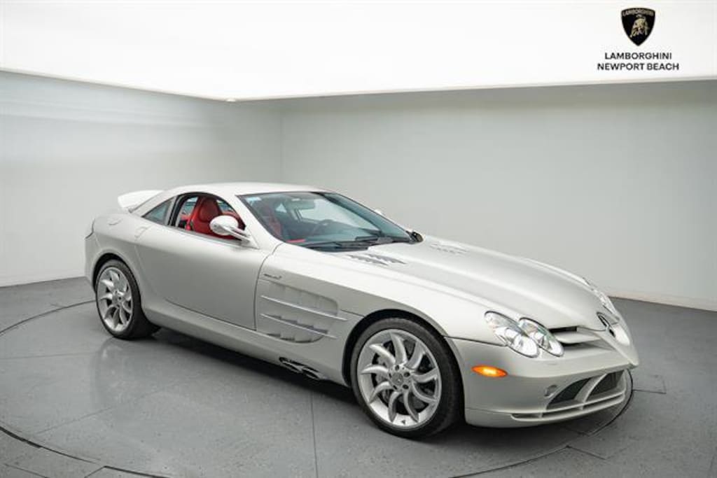 This 2006 Mercedes-Benz SLR McLaren Coupe stuns in its elegant "Crystal Laurite Silver" exterior, paired with a striking "Black / 300SL Red" leather interior that brings a bold, race-bred character to the cabin. Power comes from a hand-built 5.4-liter supercharged V8, delivering an exhilarating 617 horsepower, perfectly blending refined luxury with raw, supercar-level performance. As a landmark collaboration between Mercedes-Benz and McLaren, the SLR stands as one of the most important modern supercars ever produced.Our Service Department Recently Completed the Following: MAJOR SERVICE FROM AUTHORIZED MERCEDES DEALERSHIP, NEW SPARK PLUGS, ENGINE HOOD STRUTS, NEW DOOR STRUTSThis Example Features:19-Inch "Turbine" Forged Alloy Wheels Painted in a Silver FinishSilver Painted Brake CalipersFull Body Satin Paint Protection Film"300SL Red" Leather InteriorWe buy cars and accept all trade-ins, no matter how cheap or expensive!! For a no obligation offer call, click or stop by. 714-617-9807 or https://www.lambonb.com/sell-my-car-irvine-ca/#form3Please be sure to ask about our Ceramic Coating, Clear Bra, Black Out Packages, Wheel and Tire Packages, Tint, Extended Warranty and Maintenance, Wheel and Tire protection, Windshield and Key replacement packages.This Well-Kept car has successfully completed a thorough Safety Inspection performed by our Factory Certified Technicians. We offer available leasing and financing options and can help arrange transportation worldwide.For further information, please call, e-mail, or visit our world-renowned showroom at 44 Auto Center Drive inside the Irvine Auto Center Monday through Friday 8AM to 5PM and Saturdays 10AM to 5PM.*Please contact dealership for vehicle location. Vehicle may be off premises.*